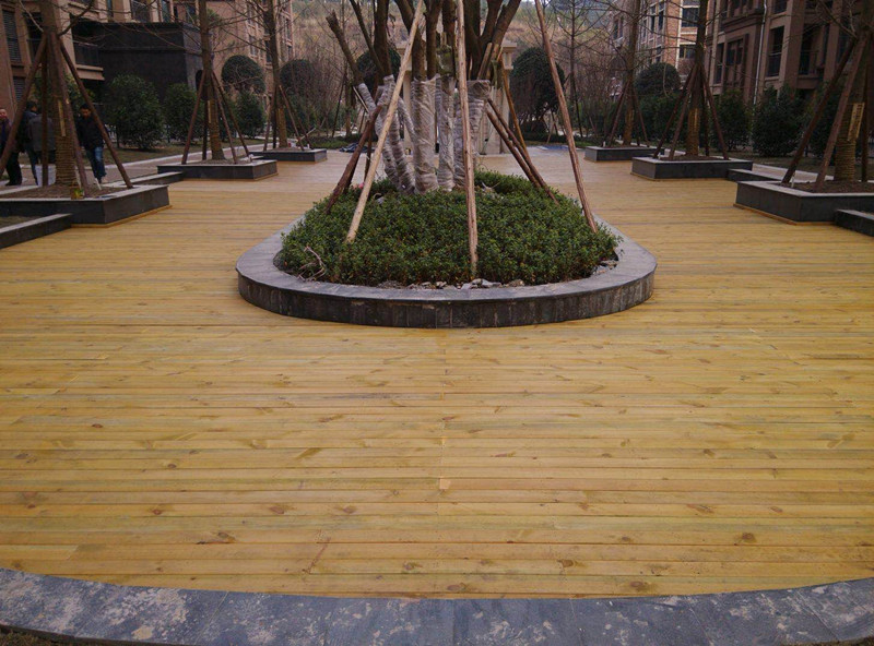 国际上通行的对木材进行防腐处理的主要方法是:采用一种不宜溶解的水性防腐剂,在密闭的真空罐内对木材施压的同时,将防腐剂打入木材纤维。经过压力处理后的木材,稳定性更强,防腐剂可以有效地防止霉菌、白蚁和昆虫对木材的侵害。从而使经过处理的木材具有在户外恶劣环境下长期使用的******的防腐性能。